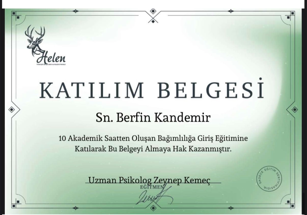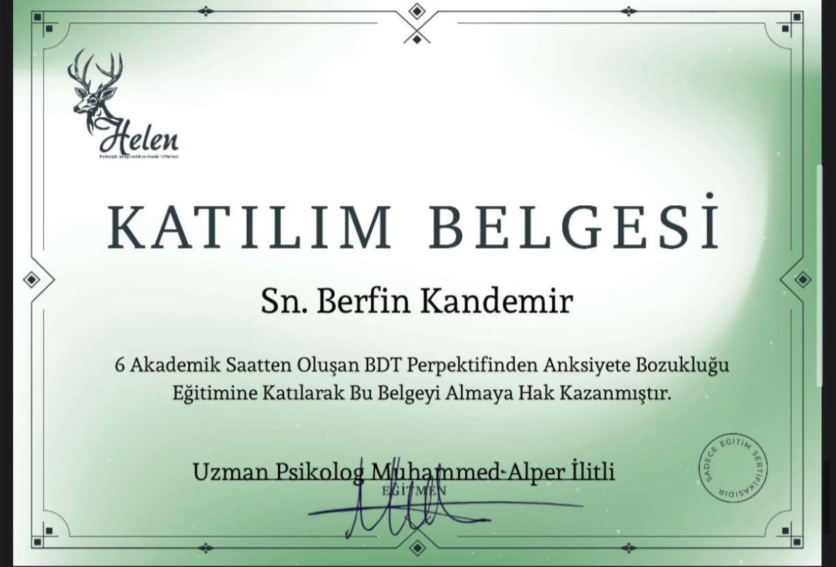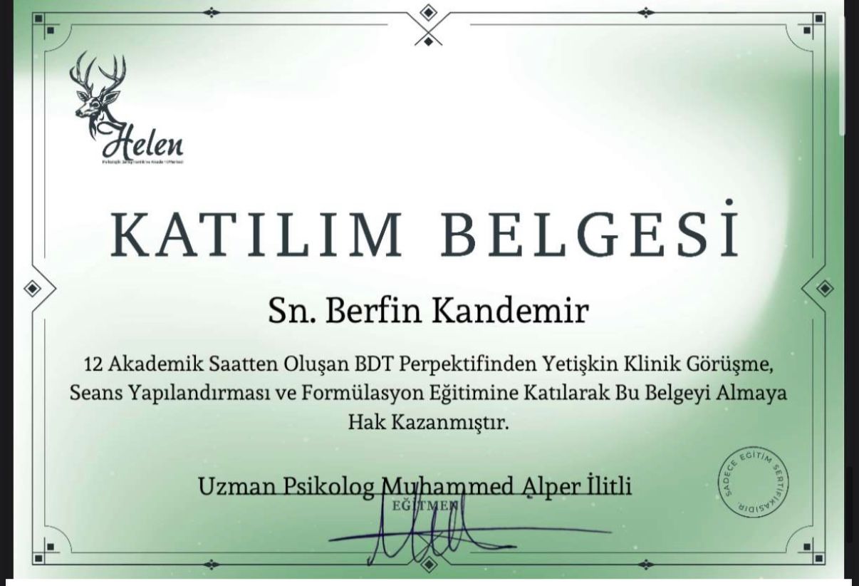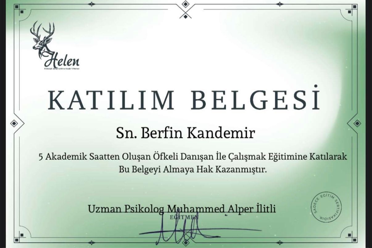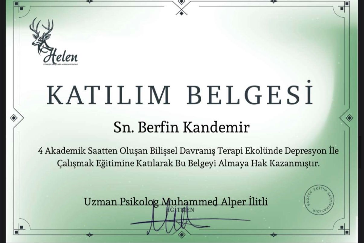 Uzun yıllar boyunca kendime güvenim çok düşüktü. Hep başkalarının onayına ihtiyaç duydum. Seanslar sayesinde değerimin sadece başkalarının düşüncelerine bağlı olmadığını fark ettim. Adım adım kendime güvenim yerine geldi. Şimdi daha cesur kararlar alabiliyorum