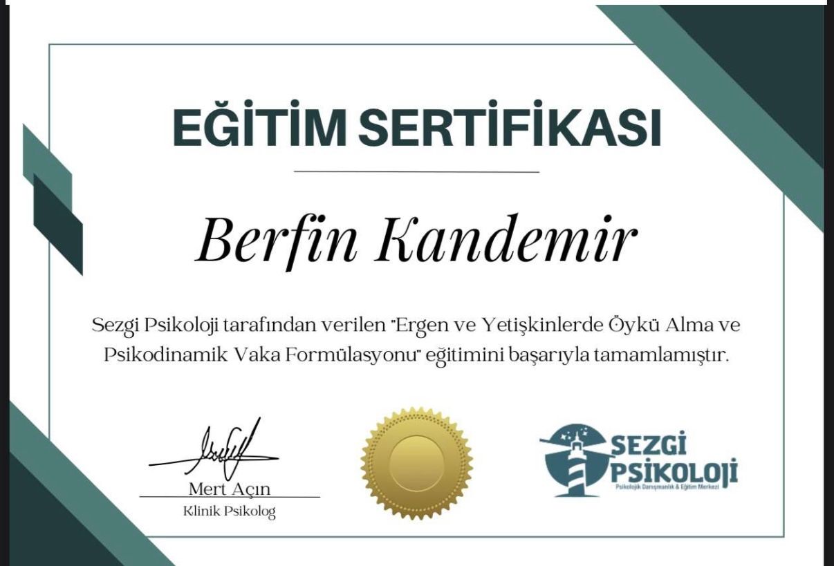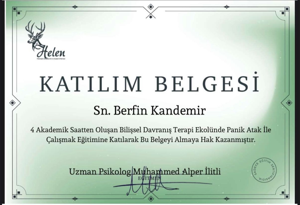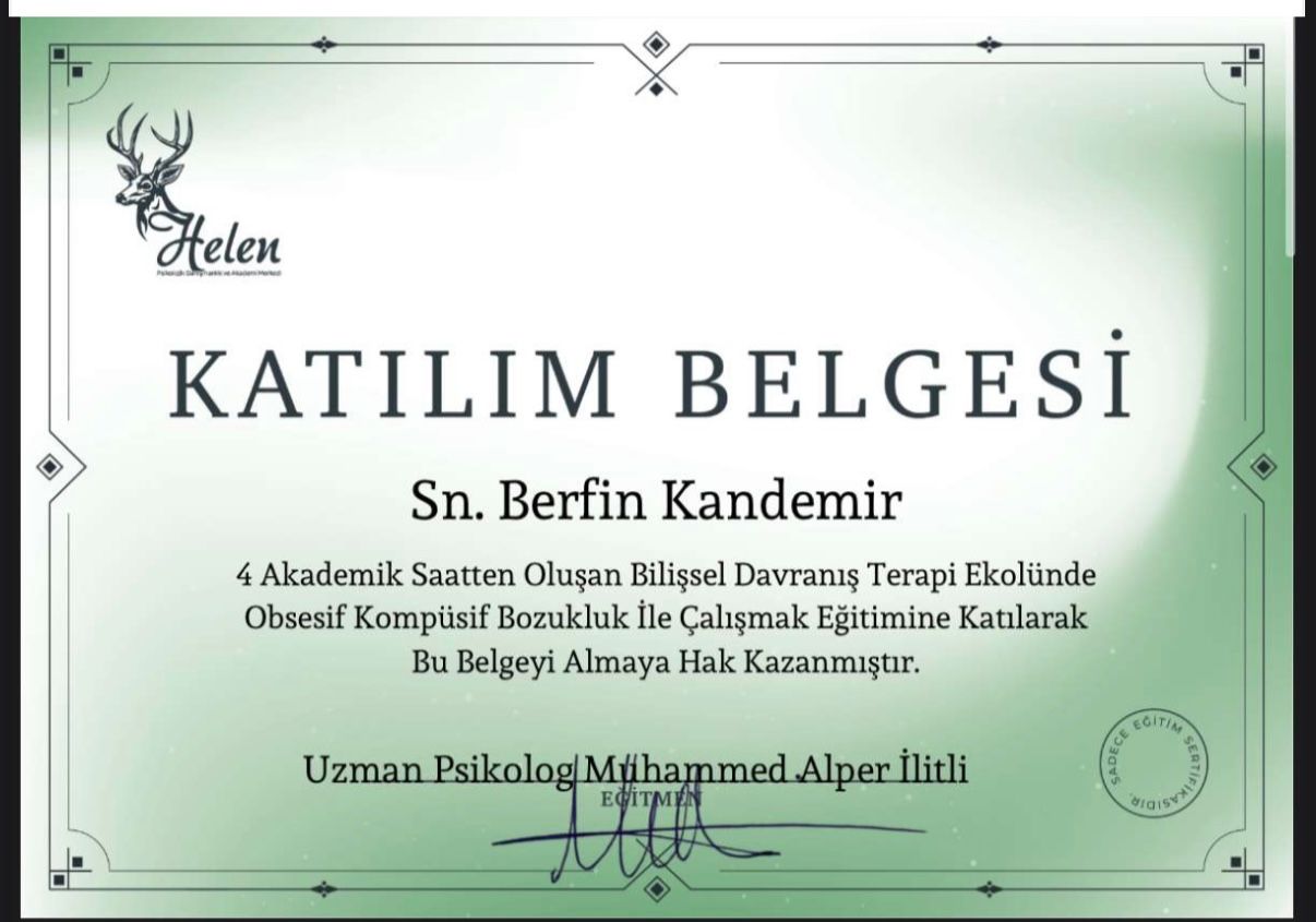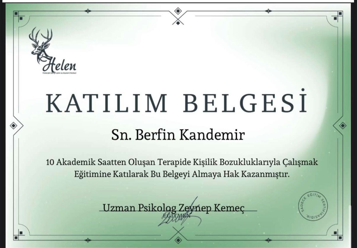 Uzun yıllar boyunca kendime güvenim çok düşüktü. Hep başkalarının onayına ihtiyaç duydum. Seanslar sayesinde değerimin sadece başkalarının düşüncelerine bağlı olmadığını fark ettim. Adım adım kendime güvenim yerine geldi. Şimdi daha cesur kararlar alabiliyorum